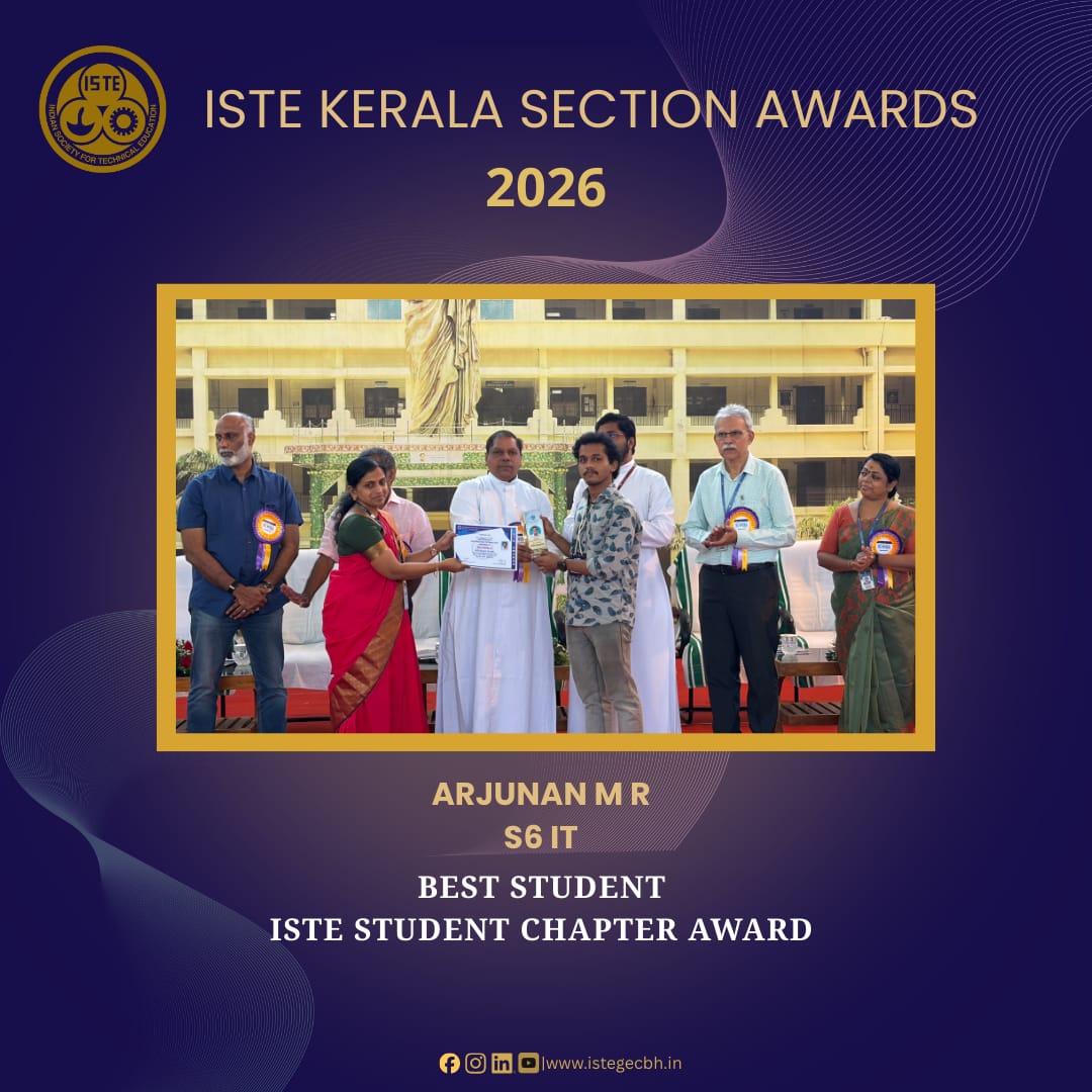STE SC GECBH๐ takes immense pride in congratulating Mr. Nithin A of S6 IT on being awarded the Best Student of the ISTE Studentsโ Chapter at the 23rd Annual ISTE State Convention โ