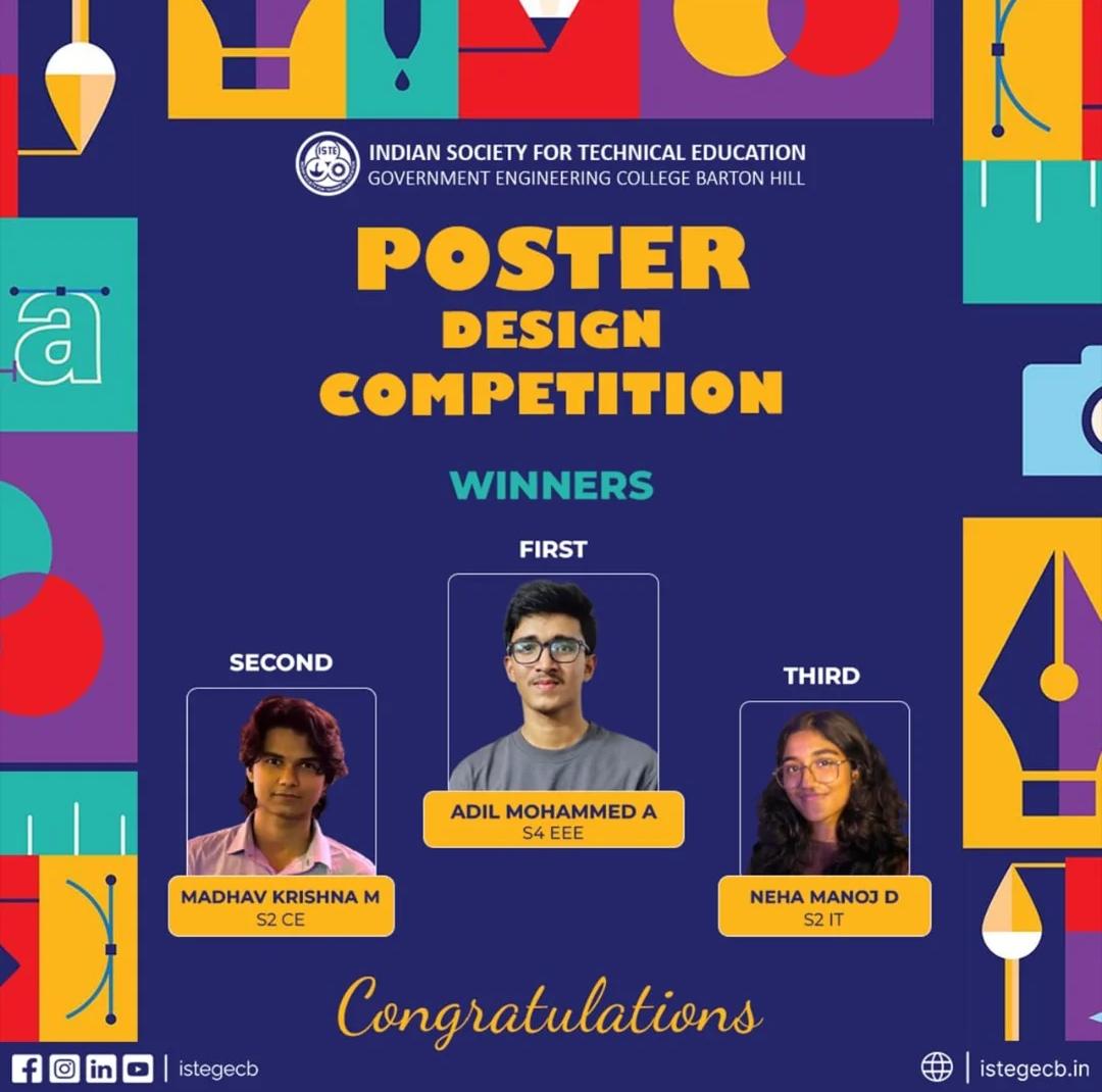 ๐ ISTE SC GECB ๐ is thrilled to announce that J GOVIND from S7 IT , GECBH is the winner of the KUNNINMELE MEMES competition ๐